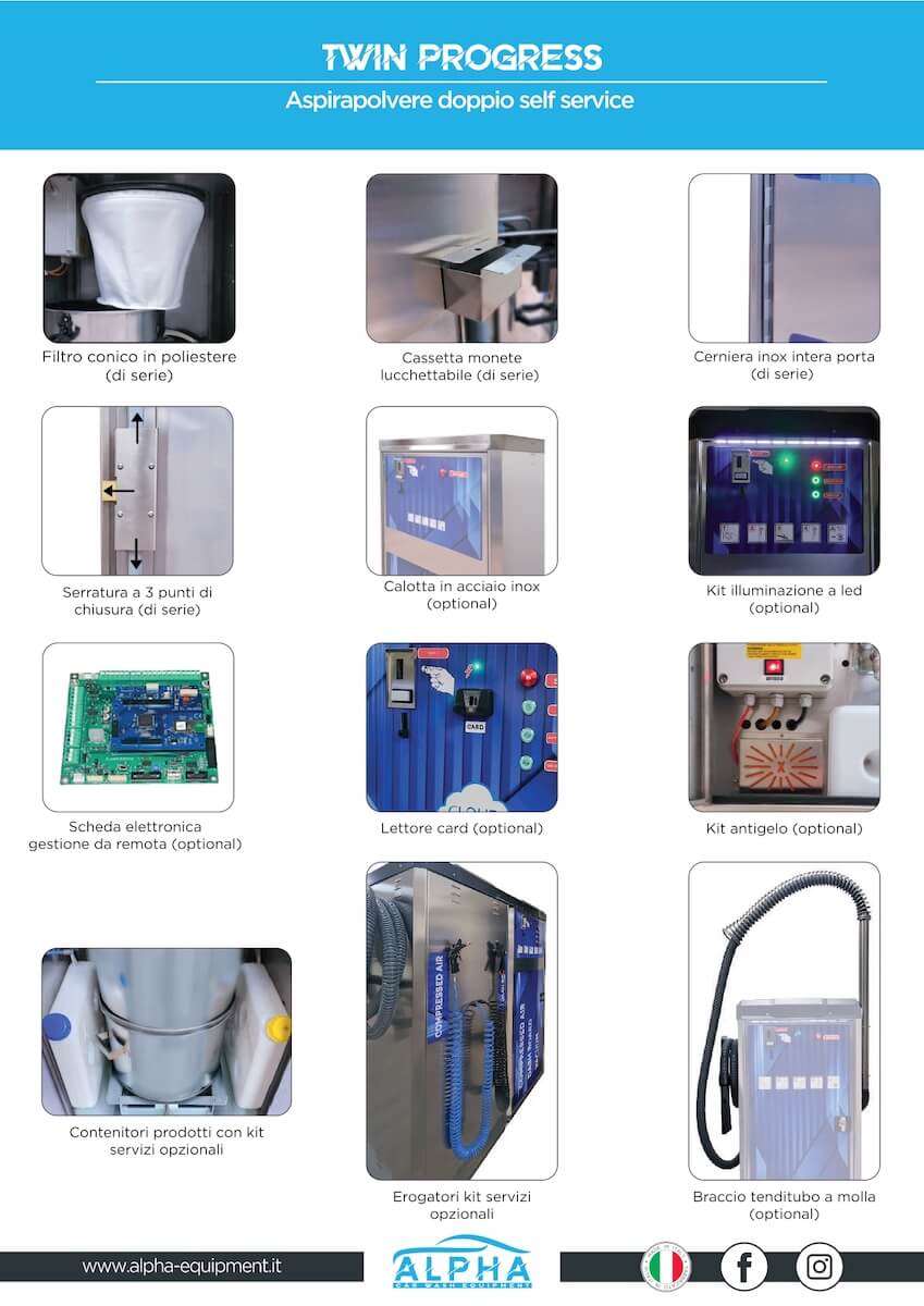- PRESTIGE: sistema automatico di pulizia del filtro e aria compressa interna.